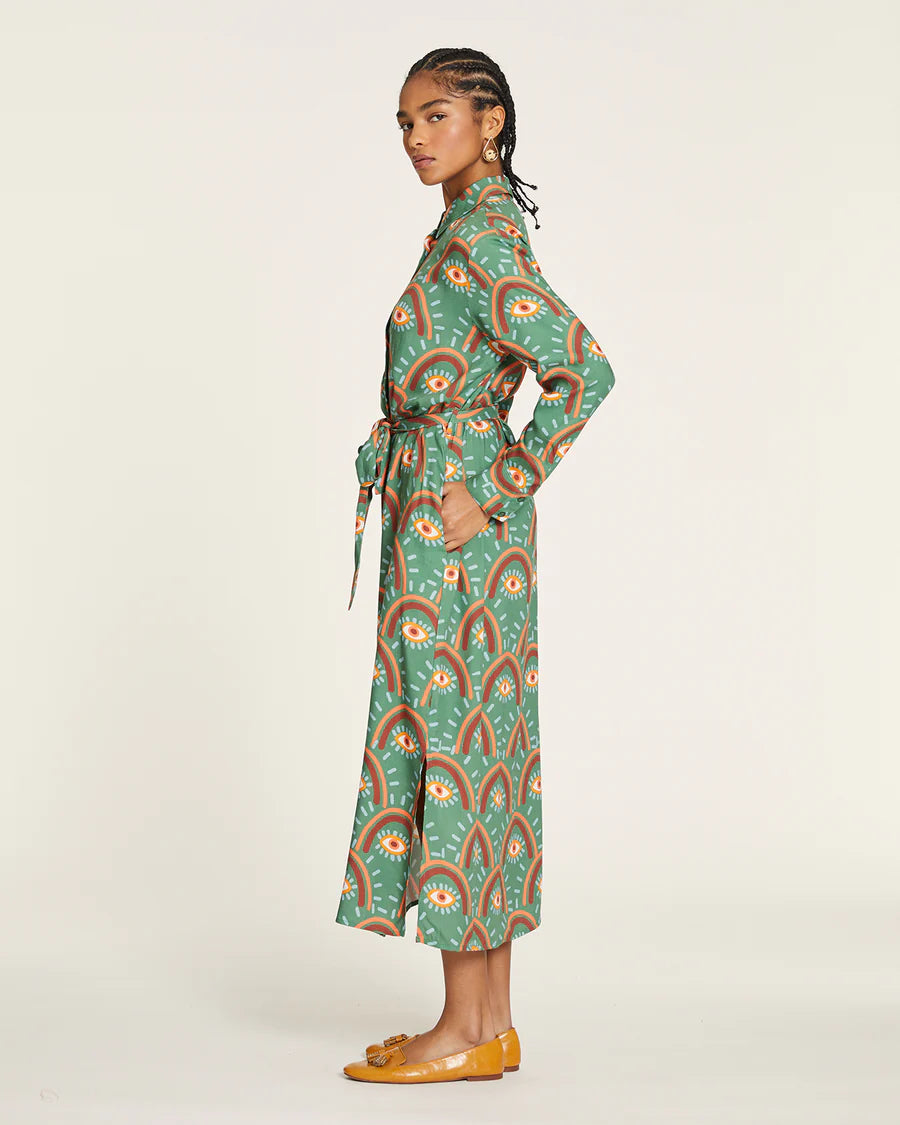 Abito Camicia Lungo Big Eyes in Rayon Stampato - Pepaloves