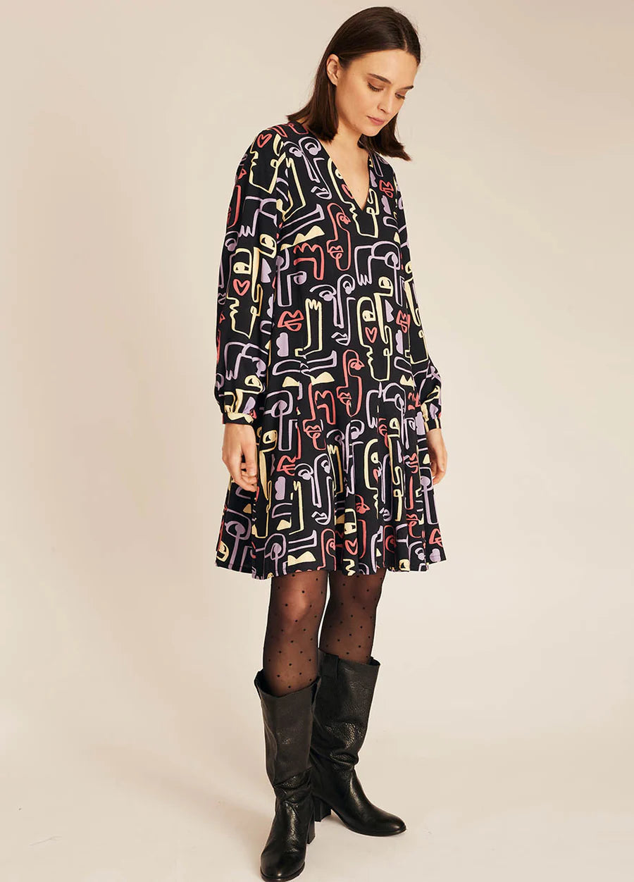Pepaloves – Abito Donna con Stampa Volti e Taglio Ampio