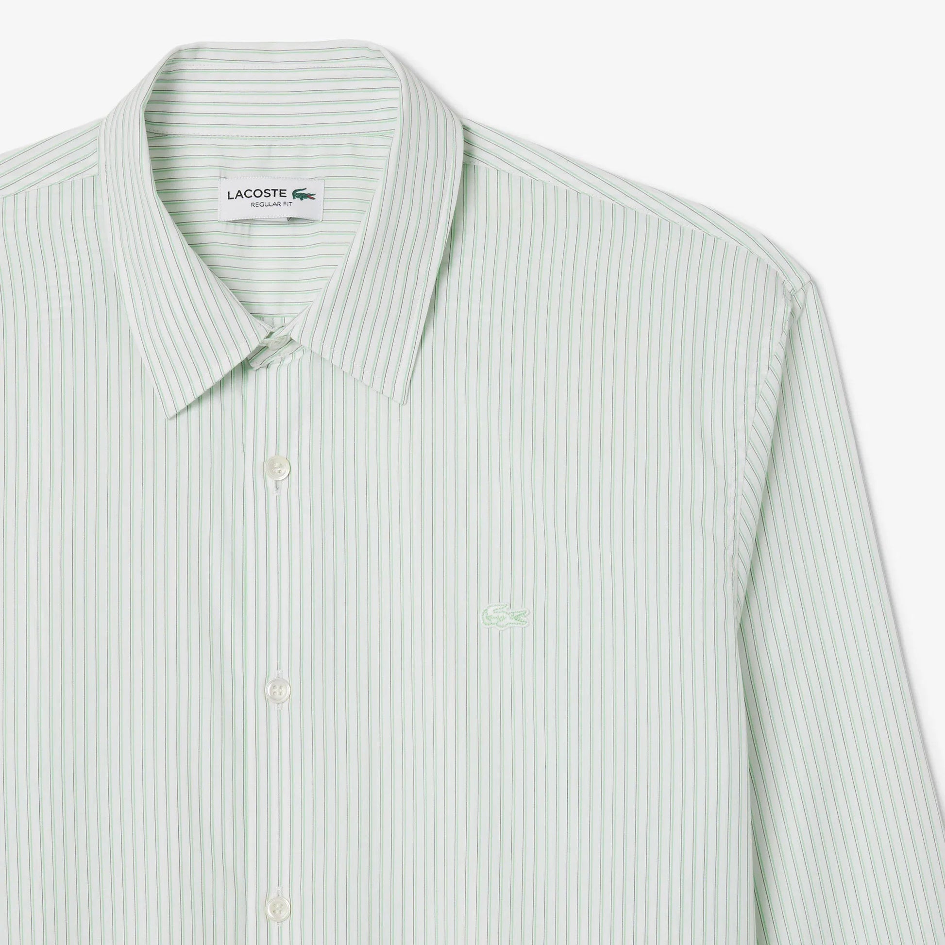 Camicia Lacoste Uomo Regular Fit a Righe in Popeline di Cotone Bianco Verde